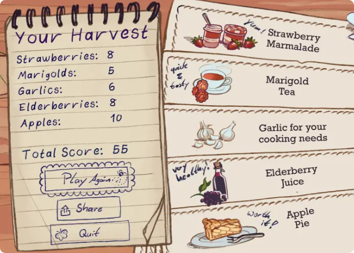 Forest Garden is erop gericht om de speler niet alleen te leren hoe je efficiënt een bloeiende tuin plant, maar geeft je ook tips over wat je kunt doen met al die oogst.