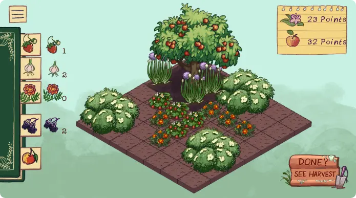 Hoe kunnen we tuineigenaren helpen hun tuinen duurzamer te maken? Welke planten planten doen het goed naast elkaar? Wat kan je maken van je oogst? Met Forest Garden ontwerp je een gezond ecosysteem met behulp van methoden voor hoe planten het beste samenwerken. Deze vlugge puzzel game maakt duurzaam tuinieren stimulerend en leuk!
